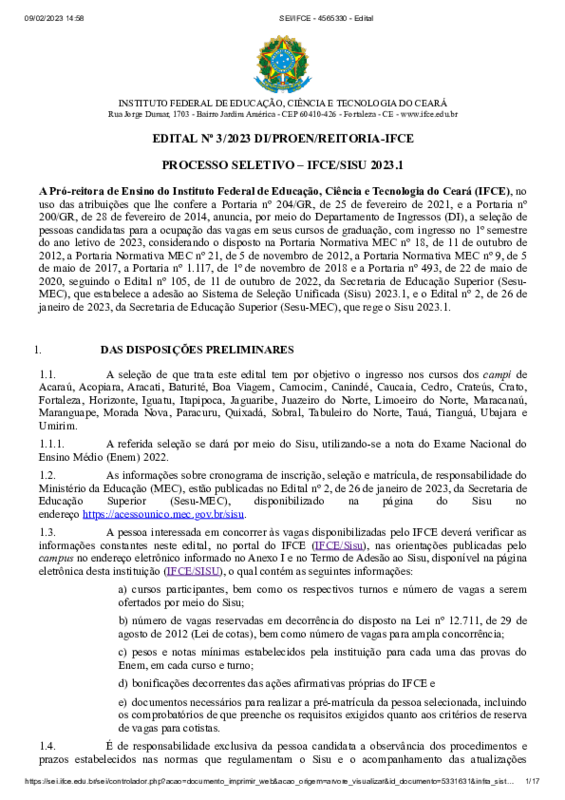 O Campus Acopiara dispõe da oferta de 70 vagas anuais para a Licenciatura em Ciências Biológicas. Tendo em vista que no ano de 2023 foram ofertadas em 2023 para o Campus Acopiara foi de 161 vagas, o quantitativo ofertado para licenciatura representa 43,4%.