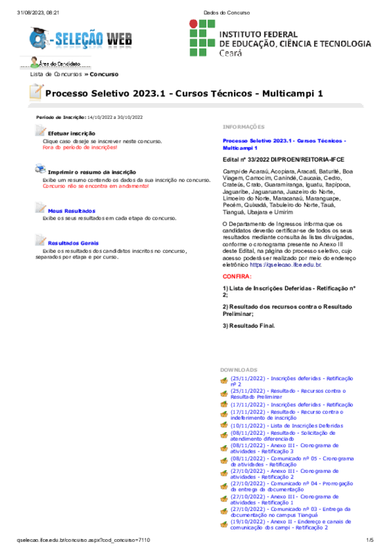 Oferta de cursos técnicos no Campus Acopiara