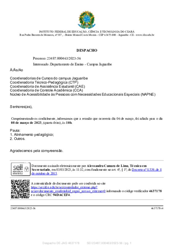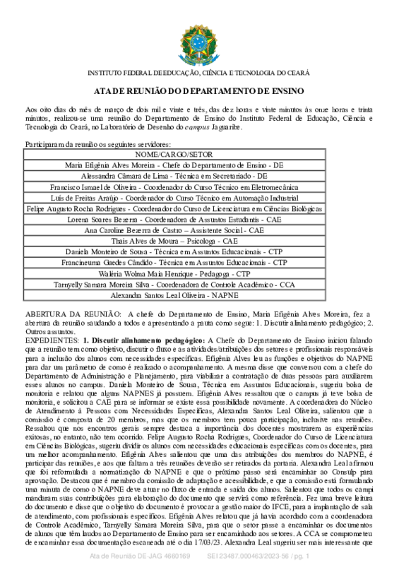 DE / CCA / CAE / CTP/ NAPNE / Coordenações de Cursos
