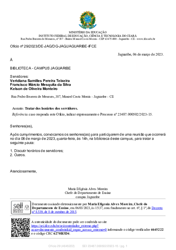 - Responsável pela atividade alterado de Maria Efigênia Alves Moreira para DE / BIBLIOTECA