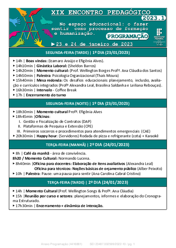 Tema do Encontro; "No espaço educacional: o fazer sentir como processo de formação e humanização".