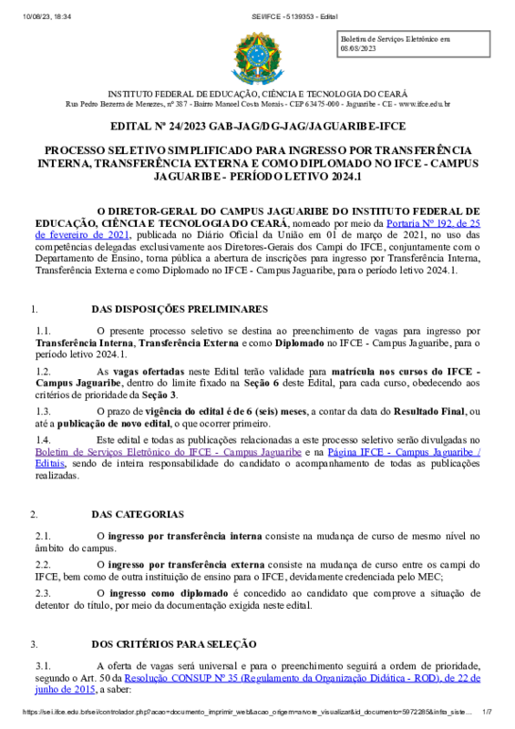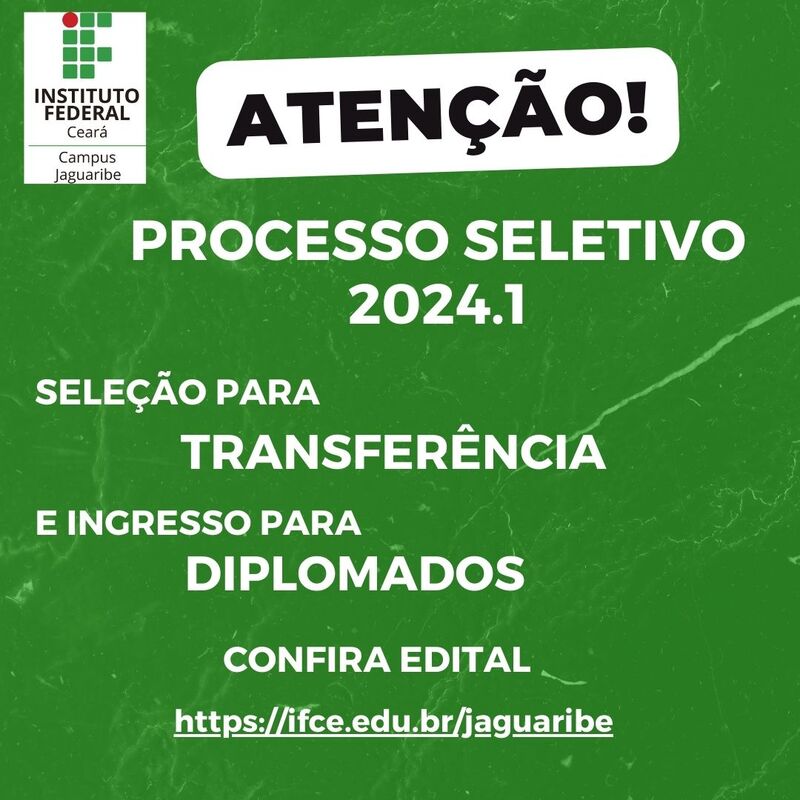AbertaProcesso seletivo para ingresso por Transferência Interna, Transferência Externa e como Diplomado