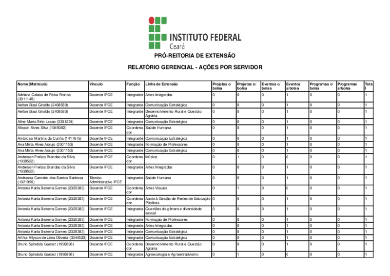 Antonia Karla Bezerra Gomes IFCE Coordenador Docente IFCE Não 1 05/12/2023 05/12/2023