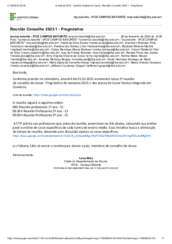 Realizar Conselho de Classe Prognóstico 2023.1