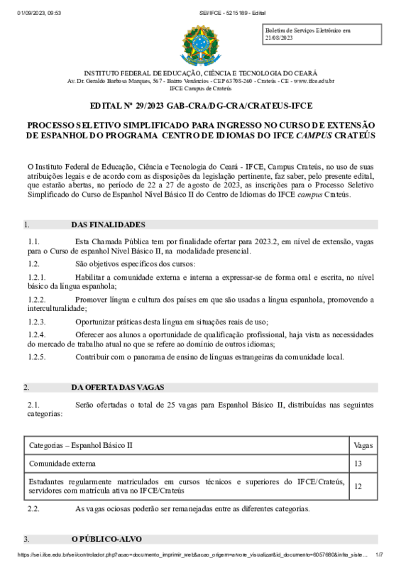 O Curso Básico de Espanhol II com duração de oitenta (80) horas é uma ação de extensão que objetiva qualificar as comunidades interna e externa do IFCE – Crateús, com o objetivo de desenvolver habilidades de compreensão, expressão, escrita e comunicação em Língua Espanhola.