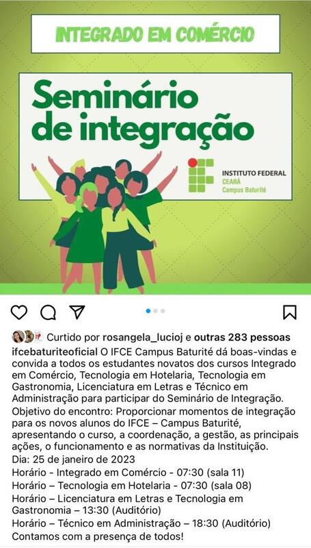 O evento tem o objetivo de acolher e apresentar os setores e possibilitar momentos de integração para os novos alunos do IFCE - Campus Baturité.