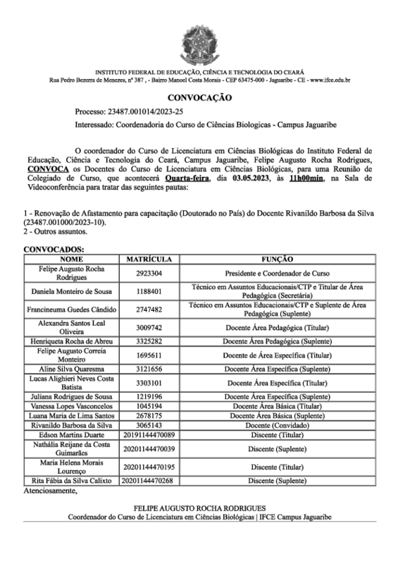 AbertaReunião com o Colegiado do Curso de Ciências Biológicas