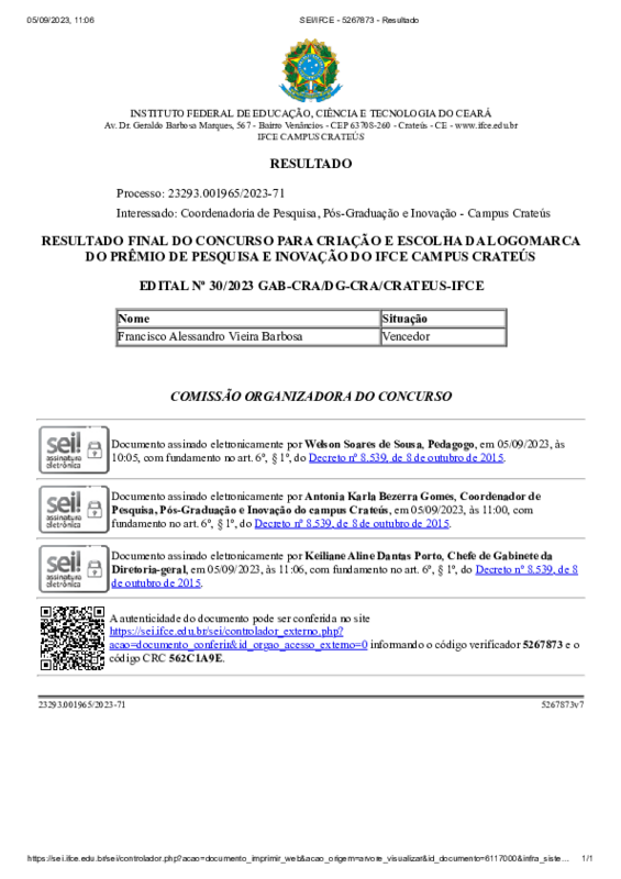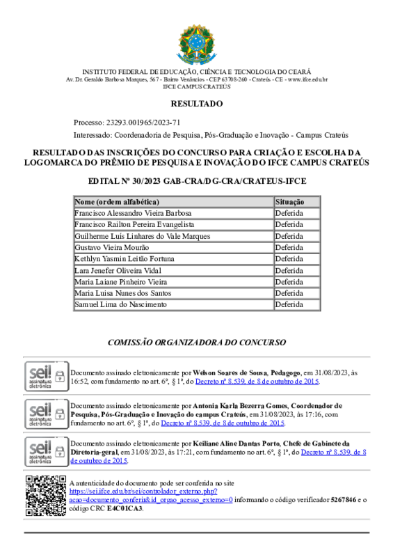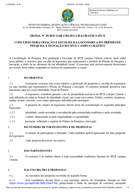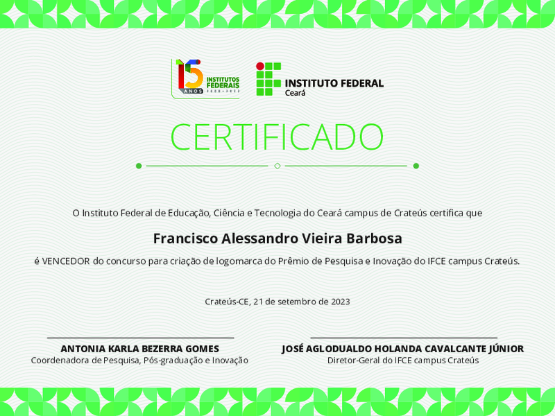 - A logomarca vencedora passará a ser de propriedade exclusiva do IFCE campus Crateús e será utilizada em todas as formas da identidade visual, tais como em eventos, folders, cartazes, impressos, mídias sociais, convites, e em outras aplicações definidas pela instituição.