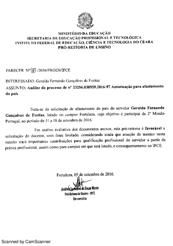 Processo 23256.038959.2016-97 - solicitação de afastamento do país do servidor Geraldo Fernando Gonçalves de Freitas - Campus Fortaleza.