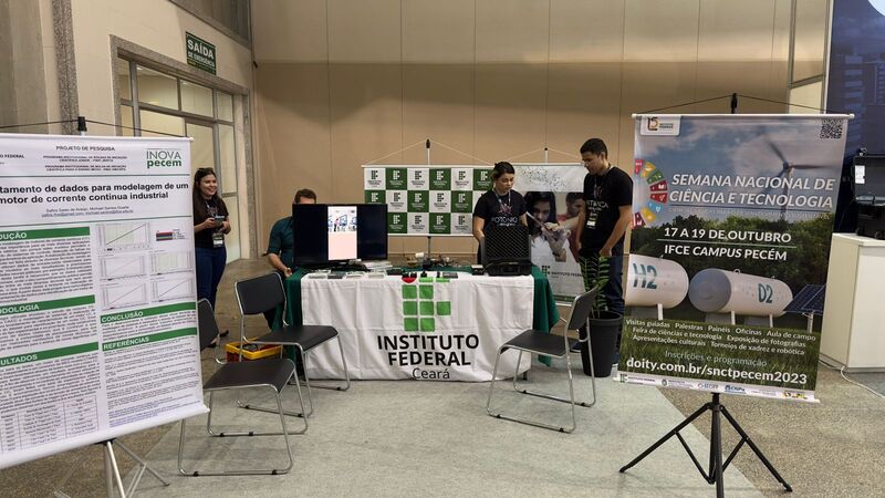 Ação de divulgação do IFCE e do campus Pecem, incluindo a oferta de cursos técnicos, superiores e de pós graduação, bem como alguns projetos de pesquisa.