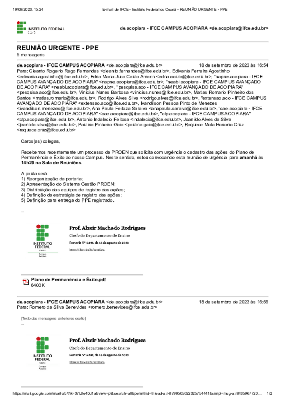 A comissão do PPE se reúne bimestralmente para discutir o plano em execução no Campus Acopiara.