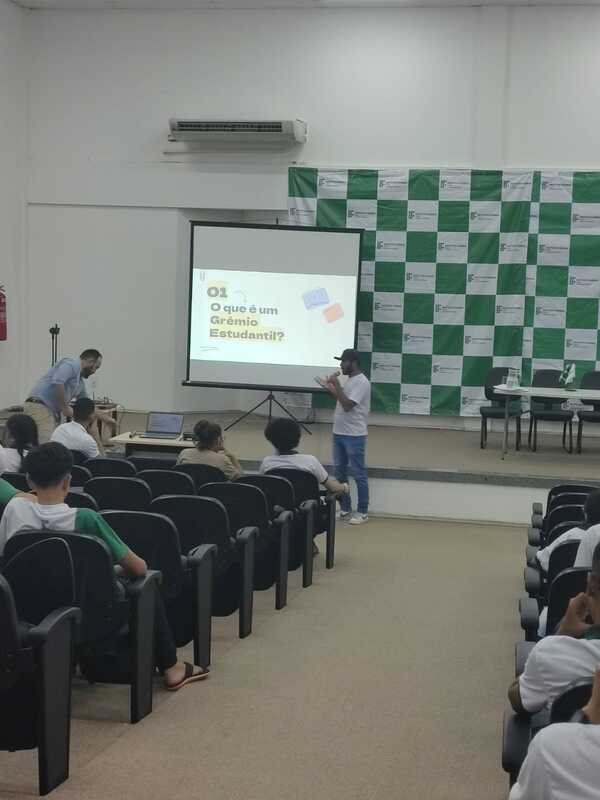 Momento de conversa com os objetivos de apresentar o que é um grêmio estudantil, suas competências e atuações, sua composição e como se dá o processo eleitoral.