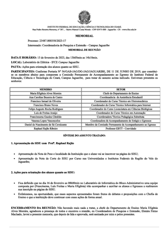 AbertaReunião com os Membros da Comissão de Acompanhamento de Egressos