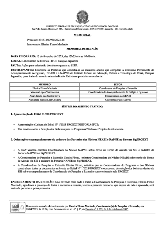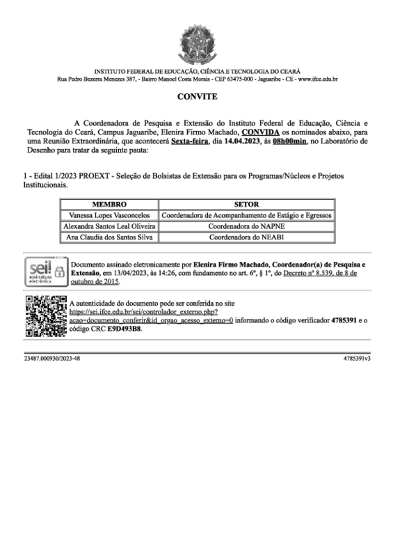 Selecionar Bolsistas de Extensão para os Programas/Núcleos e Projetos Institucionais - Edital 1/2023 PROEXT.