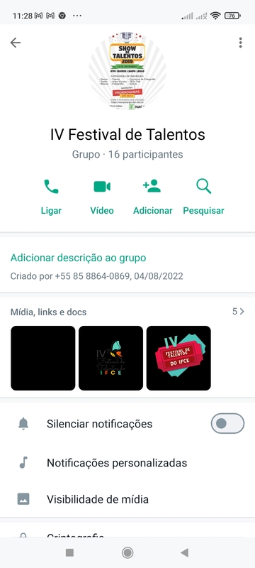 - Participação do grupo de WhatsApp, criado pela professora de Música, para troca de informações sobre o planejamento e divisão de tarefas para execução do evento.