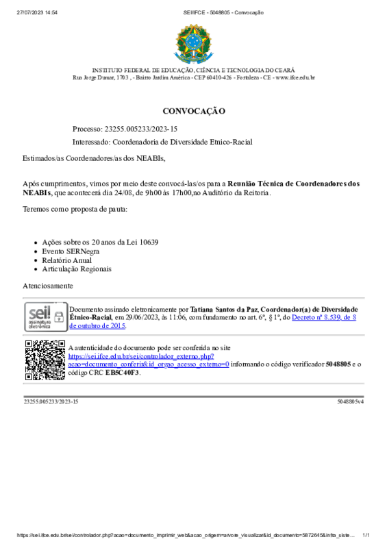 24/08/202:Ações sobre os 20 anos da Lei 10639; Evento SERNegra; Relatório Anual e Articulações Regionais.