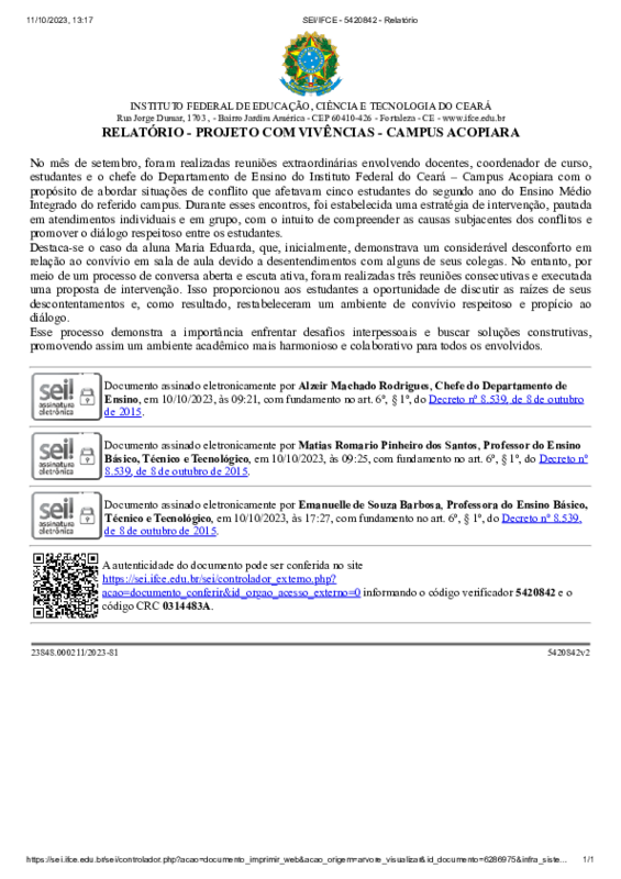PROJETO COM VIVÊNCIAS - CAMPUS ACOPIARA