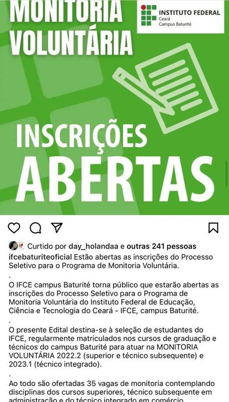 A oferta de vagas será tanto para monitoria remunerada quanto para voluntária.