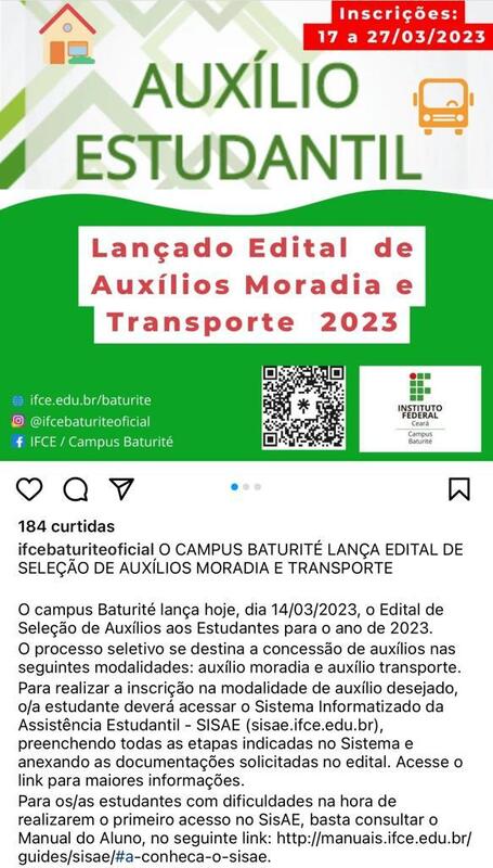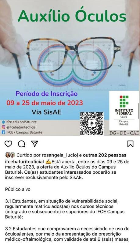 Promover a oferta de auxílio transporte, moradia e óculos, visando proporcionar recurso aos discentes para permanência no campus, reduzindo a evasão e retenção.