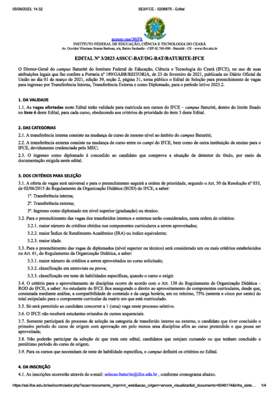 Ofertar vagas para ingresso de estudantes transferidos e diplomados.