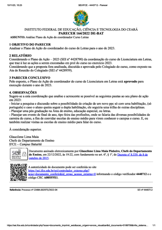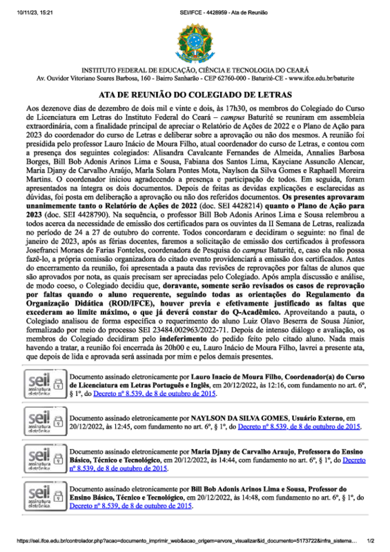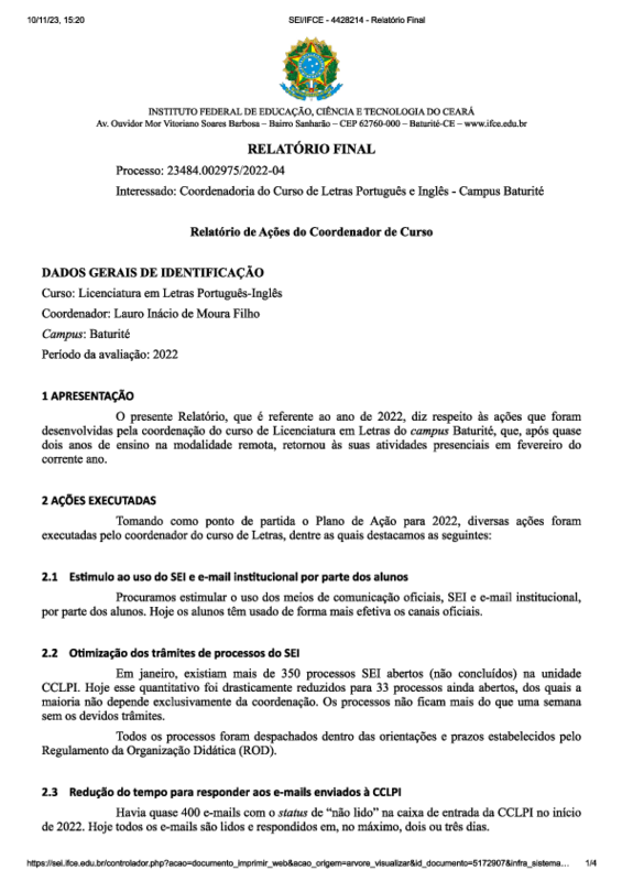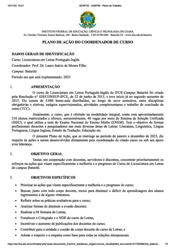Plano de Ação da Coordenação do Curso de Licenciatura em Letras Português-Inglês para o ano de 2023, que visa promover a permanência e êxito dos alunos no referido curso.