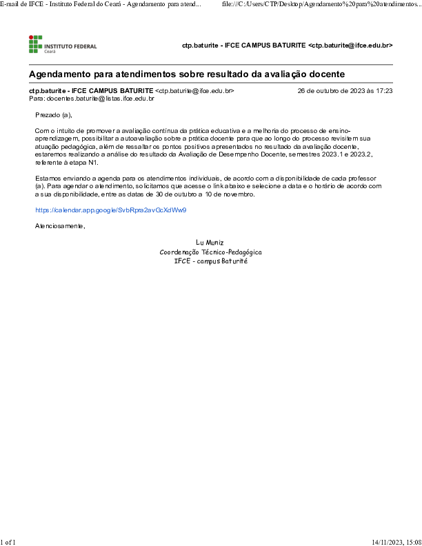 - Arquivo Agendamento para atendimentos sobre resultado da avaliação docentee.pdf Agendamento para atendimentos sobre resultado da avaliação docentee.pdf adicionado