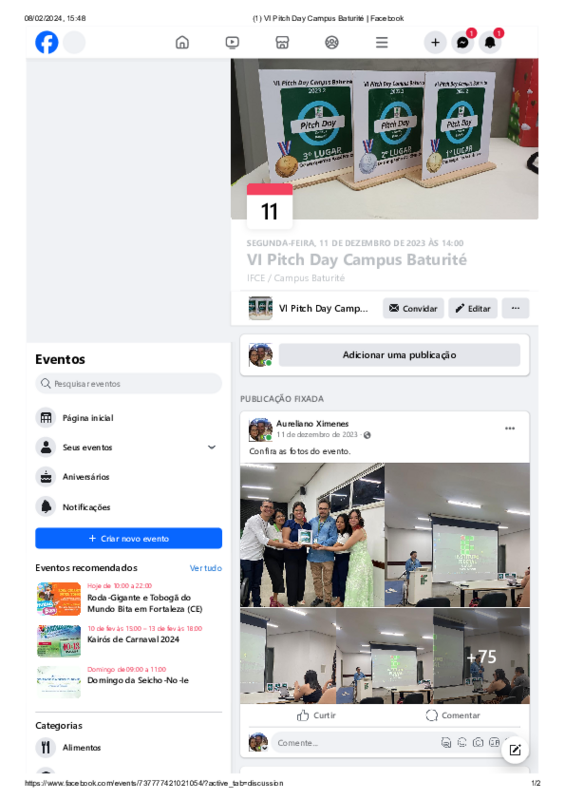 O VI Pitch Day campus Baturité será realizado no auditório do campus do IFCE no dia 04 de dezembro de 2023 e contará com a apresentação de equipes compostas por alunos da disciplina de Empreendedorismo (80h) do curso superior de Gastronomia. O desafio acadêmico Pitch Day é uma competição de modelos de negócios entre equipes de estudantes na finalização (N2) da disciplina de Empreendedorismo sob a orientação do professor. Esses modelos de negócios são construídos a partir dos conceitos teóricos e práticos abordados em sala de aula que consistem em: identificação e análise de dores (problemas) de mercado; definição e desenvolvimento de uma solução (produto e/ou serviço) inovadora e sustentável; realização de pesquisas mercadológicas; realização de análise de viabilidade financeiras; elaboração de slides; apresentação do modelo (clara e suscinta) com até cinco minutos para uma banca julgadora composta por professores e empresários locais. Os eventos já impactaram 292 estudantes desde 2019, sendo realizado três eventos em Tauá (2019.1, 2019.2 e 2020.1) e cinco eventos em Baturité (2021.1, 2021.2, 2022.1, 2022.2 e 2023.1).