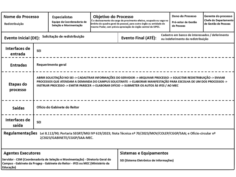 Redistribuição é o deslocamento de cargo de provimento efetivo, ocupado ou vago no âmbito do quadro geral de pessoal, para outro órgão ou entidade do mesmo Poder, com prévia apreciação do órgão central do SIPEC, observados os seguintes preceitos: