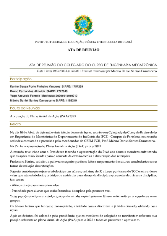 PAA-Ação PPE #121051: PAA 2023 do curso de Engenharia Mecatrônica