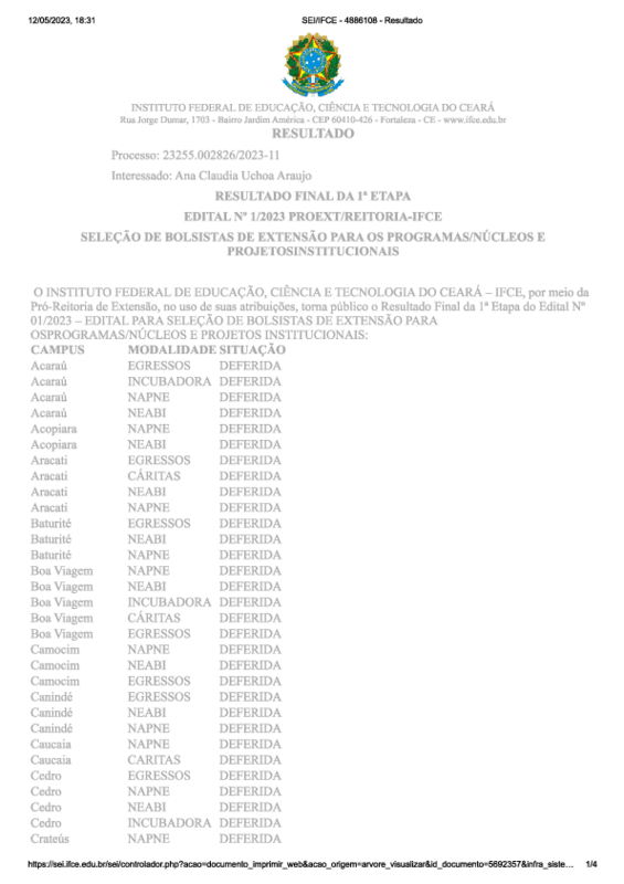 No ano de 2023, foi realizada a divulgação o EDITAL Nº 1/2023 PROEXT/REITORIA-IFCE SELEÇÃO DE BOLSISTAS DE EXTENSÃO PARA OS PROGRAMAS/NÚCLEOS E PROJETOS INSTITUCIONAIS. O campus Juazeiro do Norte através dos Docentes interessados, foram aprovados 03 projetos onde 2 desses foram nas áreas de acessibilidade e diversidade étnica e racial, conforme consta no arquivo em anexo.