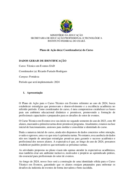 Plano de Ação do Coordenador - Curso Técnico em Eventos 2024
