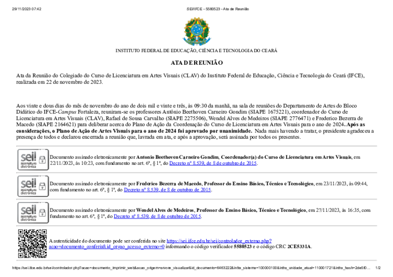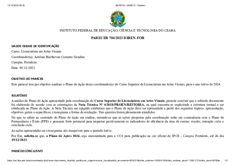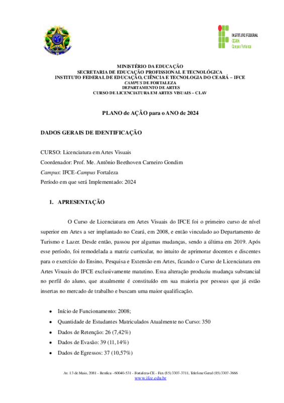 AbertaPlano de Ação do Curso de Licenciatura em Artes Visuais para o Ano de 2024