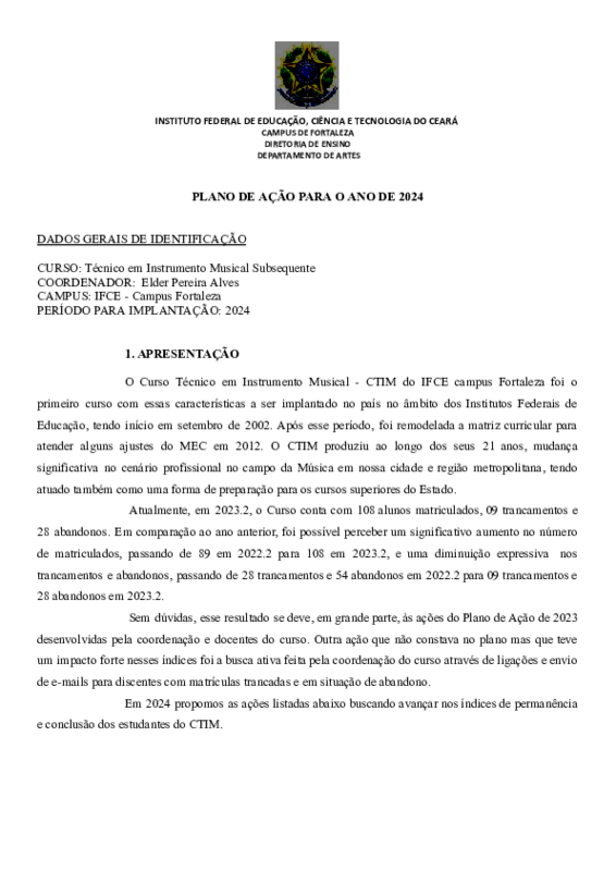 AbertaPlano de Ação 2024 - Curso Técnico em Instrumento Musical