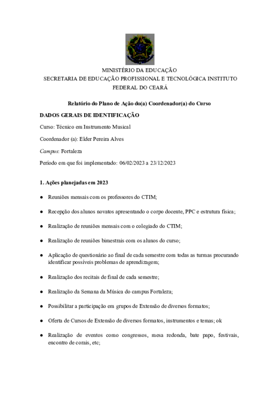 AbertaRelatório Plano de Ação 2023 - Curso Técnico em Instrumento Musical
