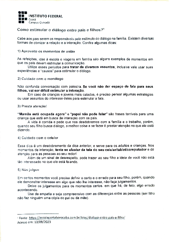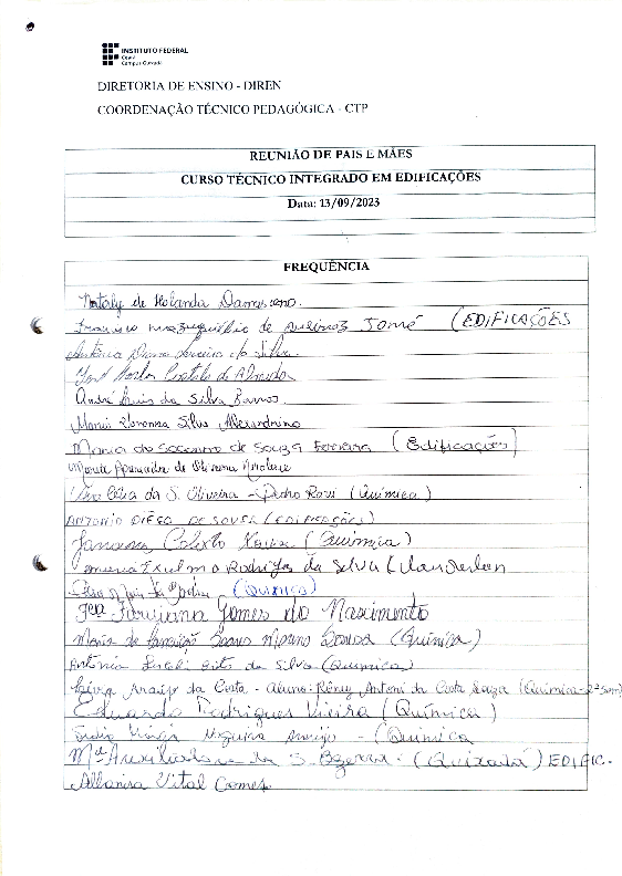 AbertaPromover encontro de Pais e Mães dos alunos e alunas dos cursos Técnicos Integrados ao Ensino Médio.