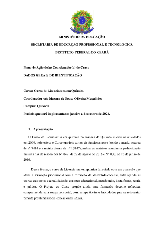 PLANO DE AÇÃO COORDENAÇÃO LQUIM 2024