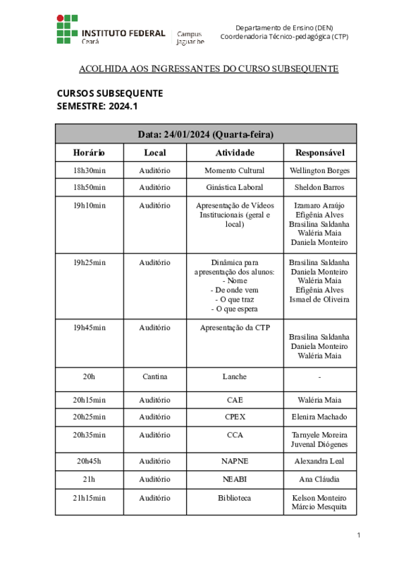 Responsável pela atividade: