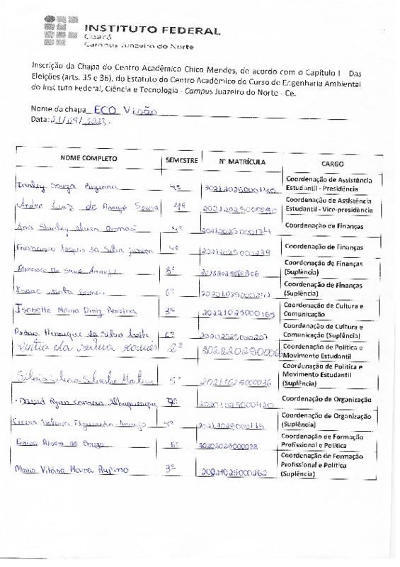 Apoio ao pleito eleitoral do Centro Acadêmico (CA) do Curso de Bacharelado em Engenharia Ambiental e Sanitária - Mandato 2023/2024