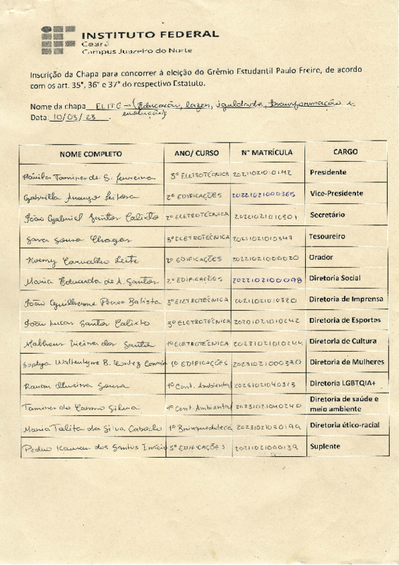 Apoio ao pleito eleitoral do Grêmio Estudantil - Mandato 2023