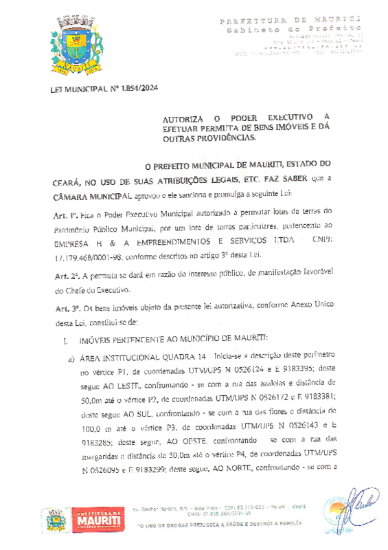 - Título alterado de Lei municipal de doação do imóvel (permuta) para Lei municipal de doação do imóvel