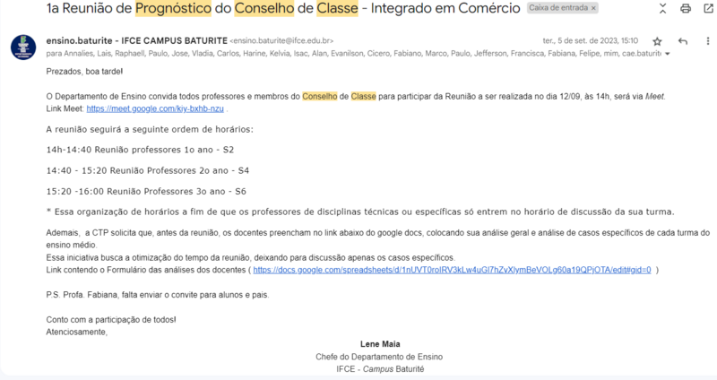 Realizar Conselho de Classe Prognóstico 2023.2