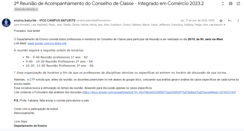 Realizar Conselho de Classe de Acompanhamento 2023.2