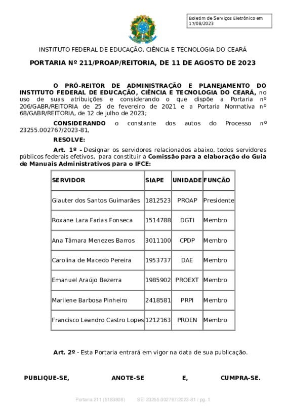 Elaboração do manual de padronização dos atos normativos do IFCE