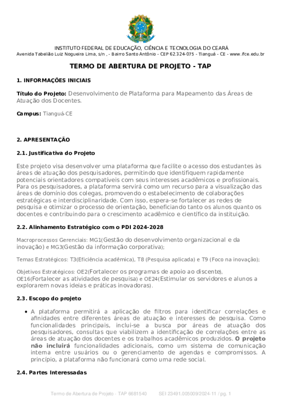 AbertaDesenvolvimento de Plataforma para Mapeamento das Áreas de Atuação dos Docentes.