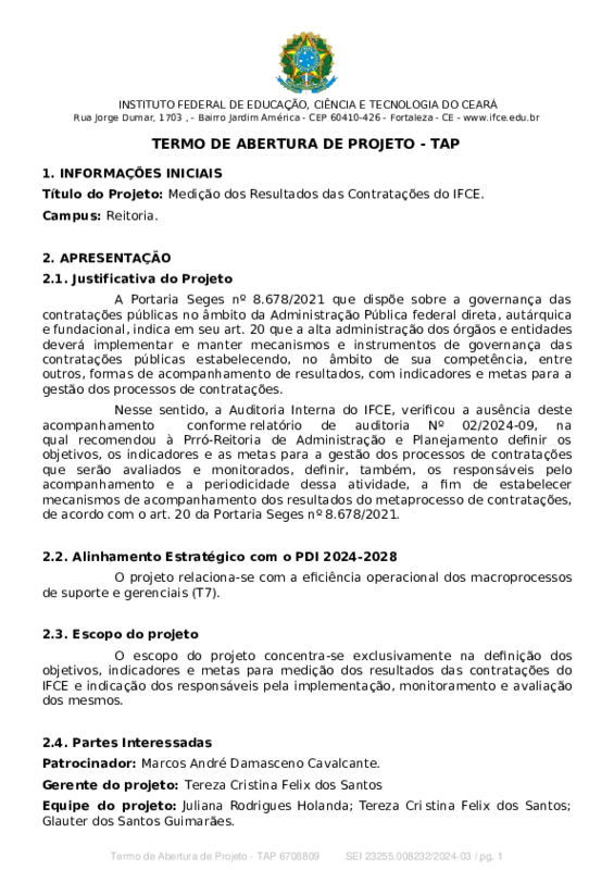 O escopo do projeto concentra-se exclusivamente na definição dos objetivos, indicadores e metas para medição dos resultados das contratações do IFCE e indicação dos responsáveis pela implementação, monitoramento e avaliação dos mesmos.