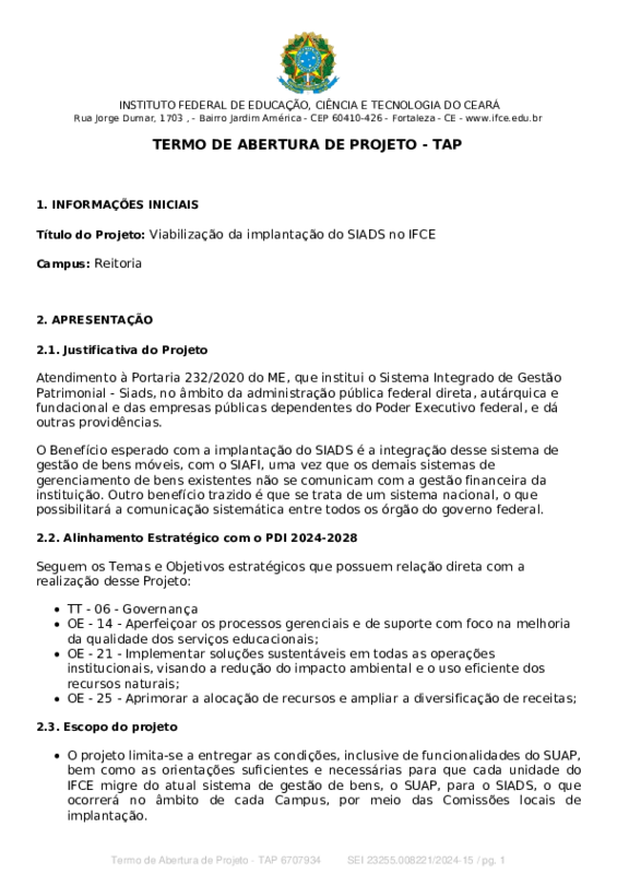 O projeto limita-se a entregar as condições, inclusive de funcionalidades do SUAP, bem como as orientações suficientes e necessárias para que cada unidade do IFCE migre do atual sistema de gestão de bens, o SUAP, para o SIADS, o que ocorrerá no âmbito de cada Campus, por meio das Comissões locais de implantação.