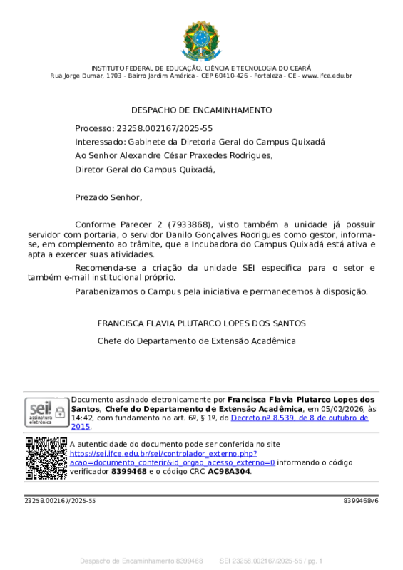 - Arquivo SEI_8399468_Despacho_de_Encaminhamento.pdf SEI_8399468_Despacho_de_Encaminhamento.pdf adicionado