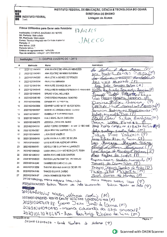 18/02/2025 - Entrega de 39 (trinta e nove) jalecos para os(as) discentes matriculados(as) no 2º ano, de 2025.1, no Curso do Ensino Médio Integrado em Controle Ambiental.