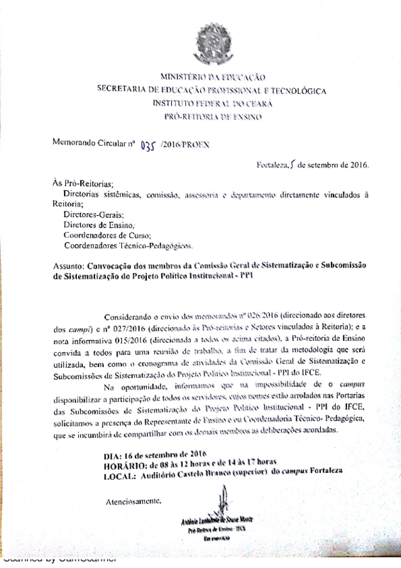 Convocação do membros da Comissão geral de Sistematização e Subcomissão de Sistematização do Projeto Político Institucional - PPI.