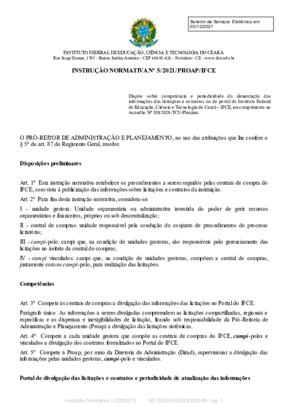 AbertaInstrução Normativa nº 5/2021/PROAP/IFCE